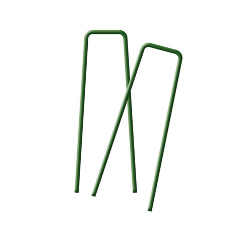 Grapas metálicas para la sujeción al suelo de mallas antihierbas, geotextiles, céspedes artificiales, etc. Al ser de color verde, se mimetiza con el color de la malla para que quede desapercibida y dar un aspecto homogéneo a la instalación. Fácil instalación. CARACTERÍSTICAS Medidas: 17 x 3,5 cm. Epoxy verde.